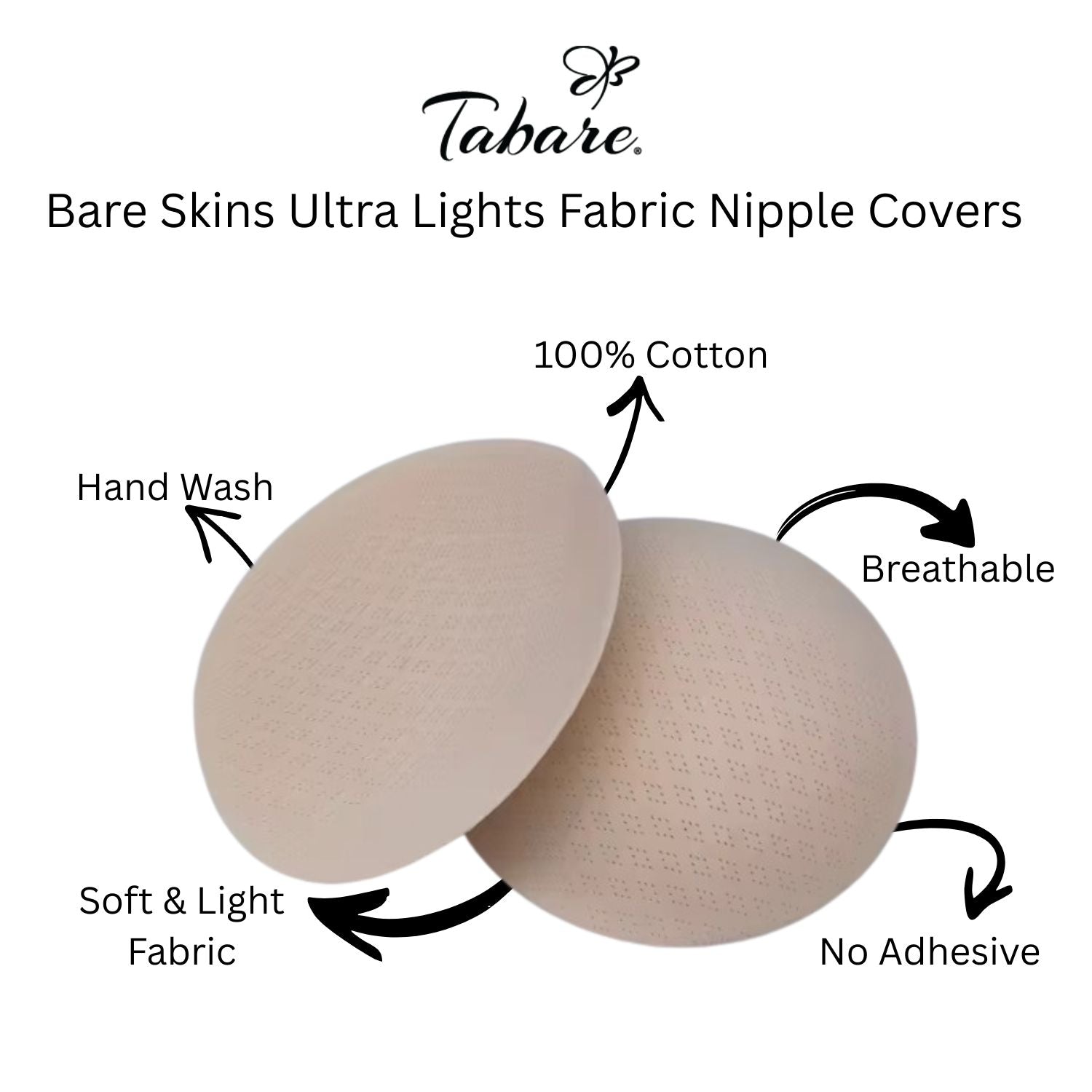 Tabare Bare Skins Ultra Light Fabric Nipple Covers are now available in a new, softer and more breathable fabric, designed to feel even lighter and more comfortable on the skin. Our new fabric creates a natural, seamless look under clothing.